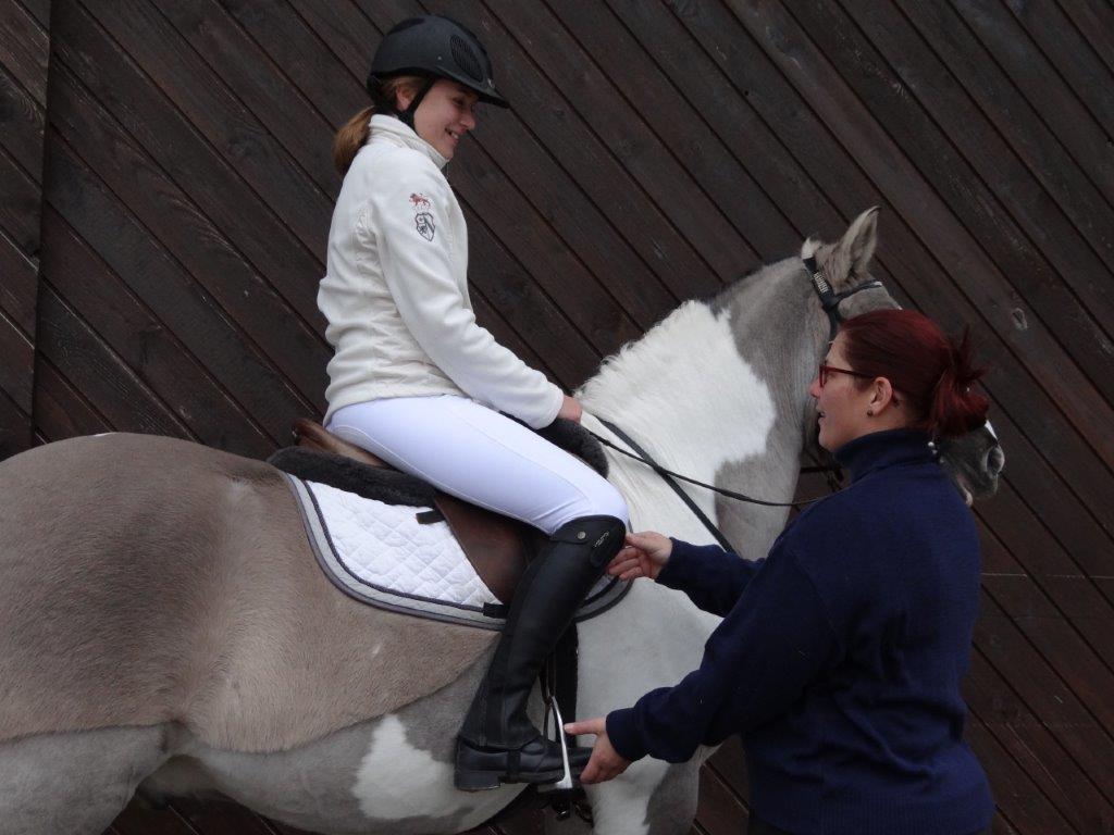Die Reitstunde dauert ca. 45-60 Minuten, im Unterricht wird nicht nur geritten; es wird auch geputzt, gespielt, geturnt, geschaut, gerätselt, gefachsimpelt, gefüttert und natürlich gelacht. Im Gelände oder auf der Wiese (Reitplatz) werden der Sitz, das Gleichgewicht und die Koordination etc. erarbeitet. Ich fördere jedes Kind individuell, egal welchen Leistungsstand es hat. Der Unterricht ist an die Kinder angepasst.